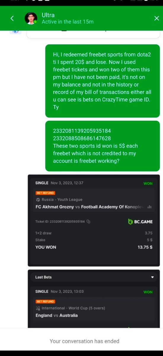 5. Hello sir! Sports freebet tickets x5 from dota2 ti prediction is not working. I placed bets and won but no bcd received in my account.