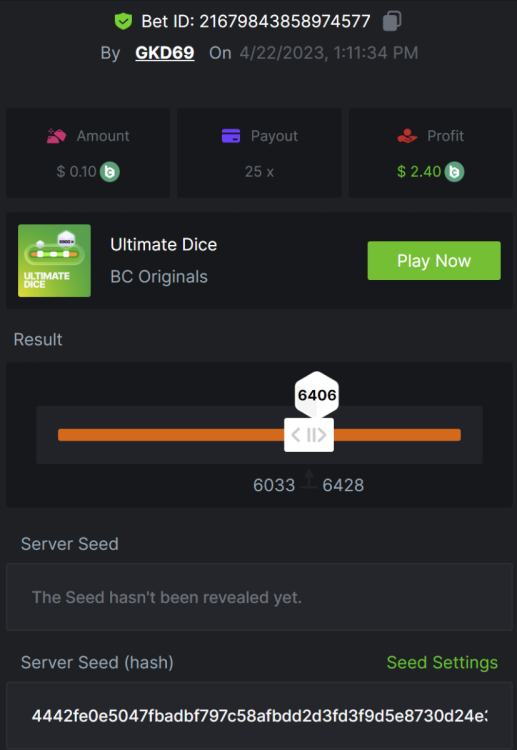 6. Bet ID: 17542544812409468 https://bc.game/#/sd/119GBLDEB6UDQR