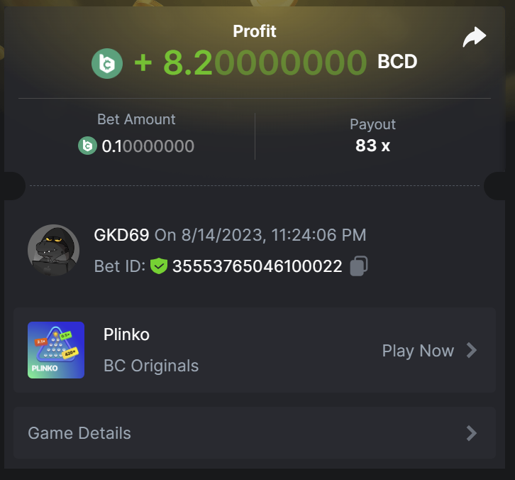 2. https://bc.game/#/sd/11PCPU9N7IY2QV BET ID: 52978331402337152