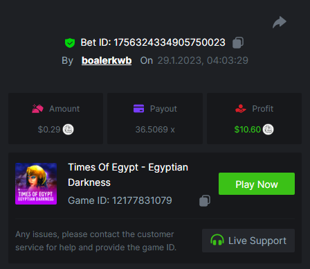 1. Majestic Winter - Avalanche - $0.10 https://bc.game/#/sd/112DGPQ5PLKOPF Book of Wolves - $0.10 https://bc.game/#/sd/112DFLVY70BGUR Times Of Egypt - Egyptian Darkness - $0.30 https://bc.game/#/sd/112DFBO2WEJW2B