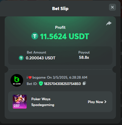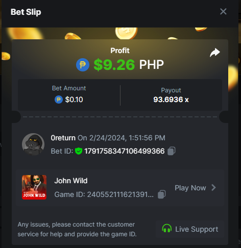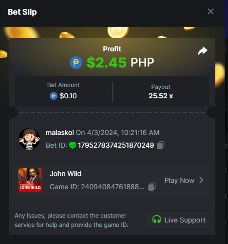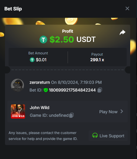 Casino Challenge Game: Crash https://hash.game/#/sd/124NRI6S9BFN9N Slots Challenge Game: John Wild https://hash.game/#/sd/124VG21N5V43OR Lottery Challenge Sports Challenge Event: Any Olympic Games Ticket ID: 2432893157512458327 Deposit & Wager Requirements Minimum Deposit: $20