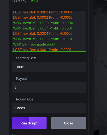 rupesh814 Posted December 22, 2022 Share Posted December 22, 2022 On 11/9/2022 at 4:55 AM, Skele said: what game do you want it in or rather client script or sandboxed and for what game. I will just translate it into a generic sandboxed one that can be used for crash or hash-dice for now. can you help me with d'Alembert betting stratergy in which i can add bet on losing and subtract from bet on winning. Link to comment Share on other sites More sharing options...