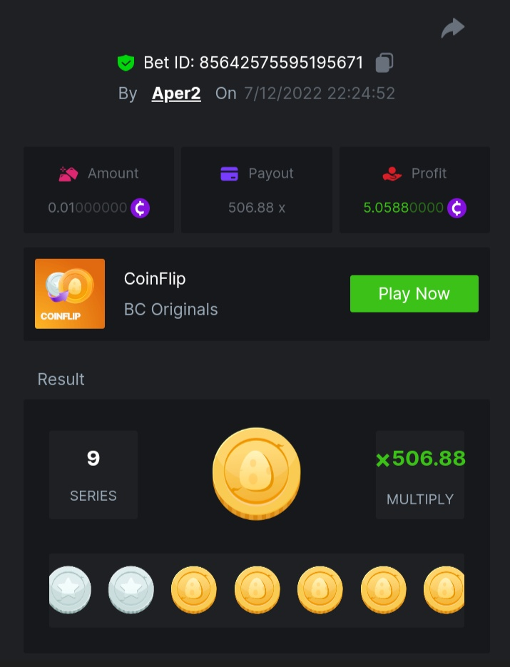 Aper2 Posted December 8, 2022 Share Posted December 8, 2022 https://bc.game/#/user/profile/3467403 https://bc.game/game/coinflip#/sd/10YSLYZMV6B0NN Link to comment Share on other sites More sharing options...