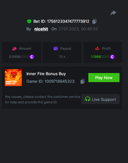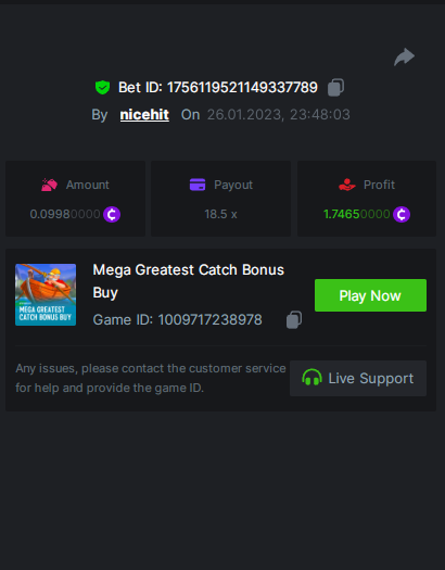 bassabar Posted January 26, 2023 Share Posted January 26, 2023 Total multiplier: 434.8307x Bounty (50x): No Mega Greatest Catch Bonus buy Multiplier: 195.574x https://bc.game/#/sd/1126LO0GQUQUJ7 Hot Volcano Bonus buy Multiplier: 28x https://bc.game/#/sd/1124KASCRCG4CZ Gold Of Sirens bonus buy Multiplier: 30x https://bc.game/#/sd/1124JQYN2DWU8J Magic Wheel Multiplier: x Inner Fire bonus buy Multiplier: 25.1987x https://bc.game/#/sd/1124KH7RMPE7F7 Hot Triple Seven Special Multiplier: 30.509x https://bc.game/#/sd/1126KWA8F8F9JN Patricks Magic Field Multiplier: x Rueda De Chile Bonus Buy Multiplier: 45.017x https://bc.game/#/sd/1126KQPCRG93PV Massive Luck Multiplier: 36.514x https://bc.game/#/sd/1126KKLMM81FRN Juicy Gems Bonus Buy Multiplier: 44.018x https://bc.game/#/sd/1126K13JKSCT1V Link to comment Share on other sites More sharing options...