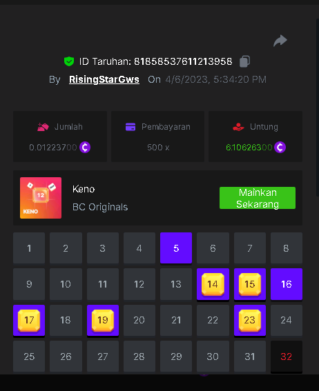 Maksypro Posted April 6, 2023 Share Posted April 6, 2023 (edited) Read Carefully Before Start To Hunt Daily Challenges #197 KENO Hunt : Win the highest multiplier Min Multiplier requirement 100x Min Level 4 ️Duration Starting : Now End time : 23.59 UTC Time How to Join? Make screenshot + paste your bet link + UID or Profile link Any coin, with min bet 0.01 USD is allowed (jb/bb/bcl not allowed) Reward Prizes 1st Place.....$7 BCD 2nd Place.....$5 BCD 3rd Place.....$4 BCD 4th Place.....$3 BCD 5th Place.....$2 BCD 🏵 Winners will be announcing next day after Roll Point! Edited April 6, 2023 by Maksypro Link to comment Share on other sites More sharing options...