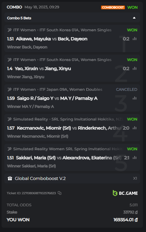 • Bets withdrawn will not be counted.