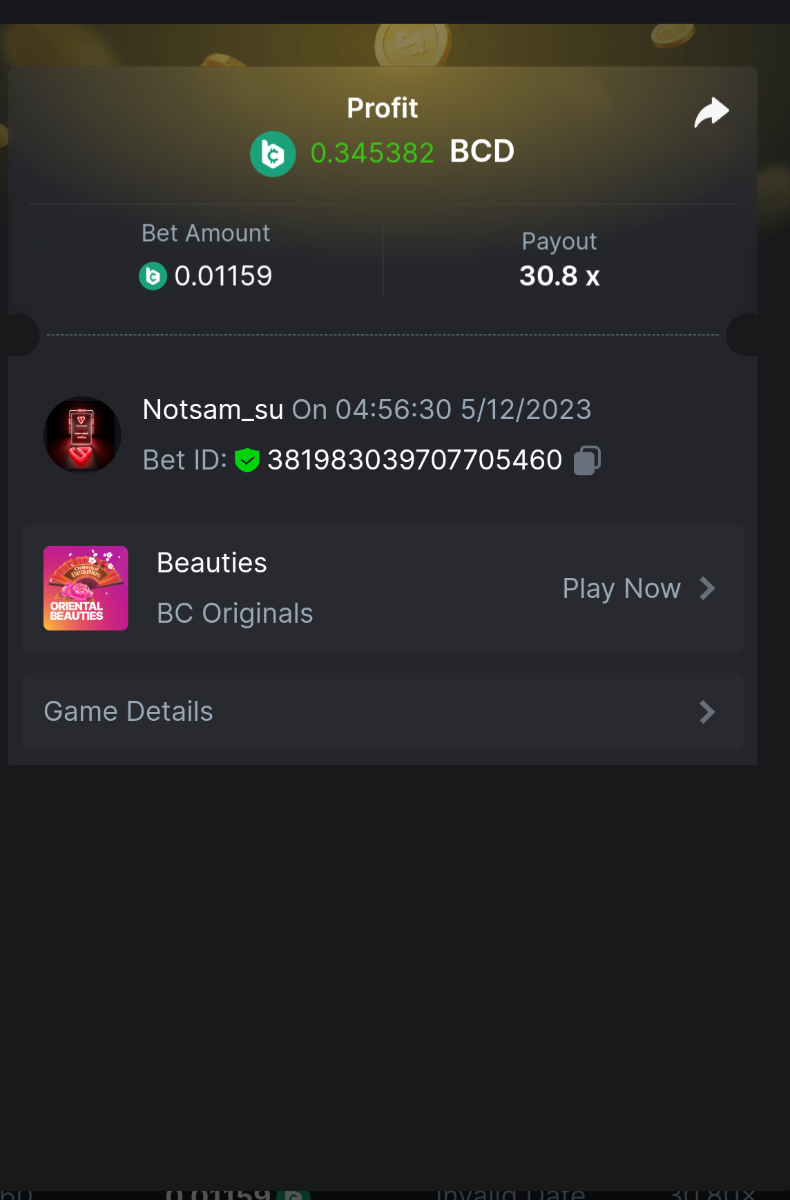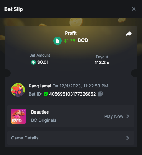 4th place . . . .  3$ BCD  - baccarar - 111.6x  1.36