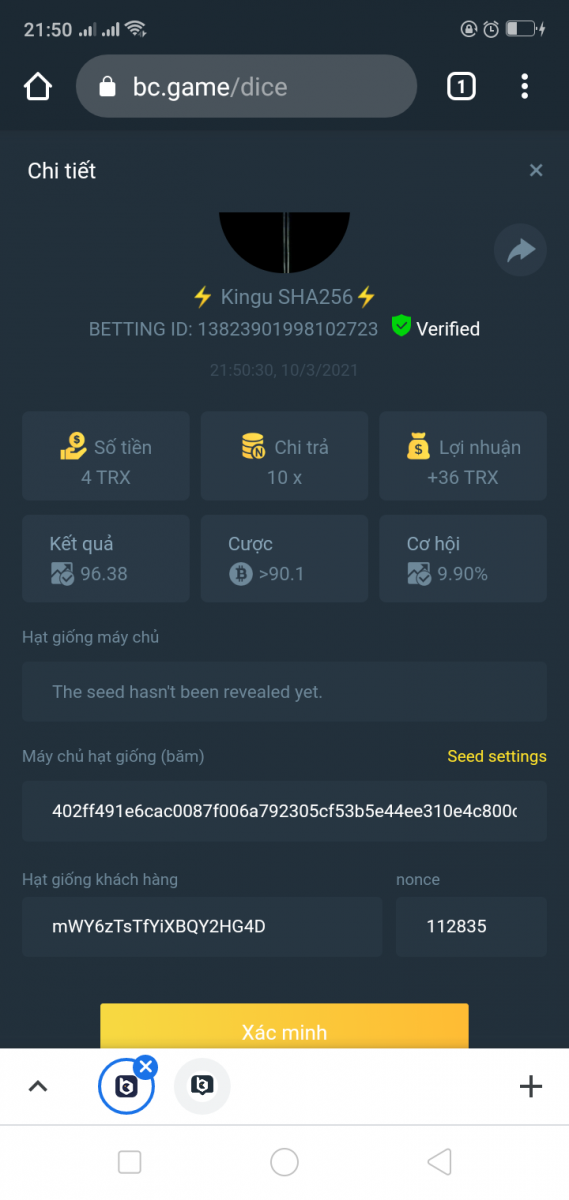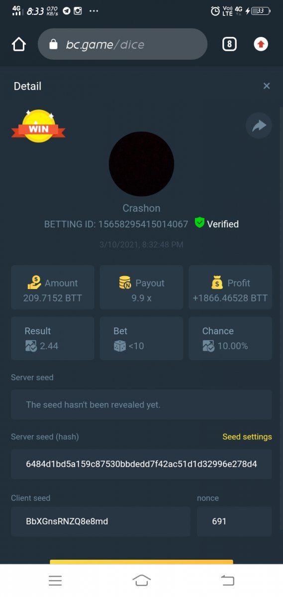 Admin BC_Jack Posted March 10, 2021 Admin Share Posted March 10, 2021 Starts: 14:00, March 10th GMT Ends: 14:00, March 12th GMT We’re excited to announce that we have three new coins available now at BC.Game !! And enjoy it more we are hosting 2 days contest where we will be giving 3 lucky winners $150 worth of new coins! Read on below to find out how you can win! What's the Challenge? Win 2 or more consecutive bets with 10x (win chance 9.9%) on Classic Dice. Minimum Bet Amount $0.05 equivalent Eligible Coins All Coins are eligible as long as they match the minimum bet amount Available Prizes 3 Winners will win $50 worth of BNB/TWT/CAKE each! How to Enter the Challenge Take a screenshot displaying the bet details and send a reply to this thread with it. Must be able to see betting ID so that your bet can be verified. Please do not make multiple posts, just edit your original one if you need to add a new payout or replace a payout with a better qualifying amount. Nonce of all bets has to be consecutive Disclaimer: Multiple accounts not allowed Fake screenshots will be checked and deleted Link to comment Share on other sites More sharing options...