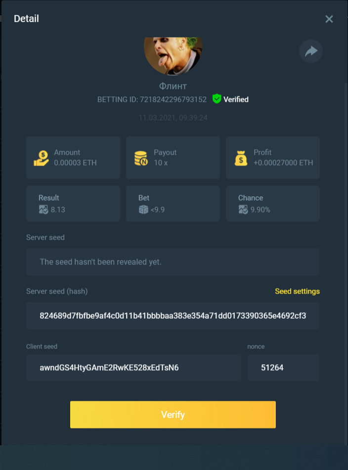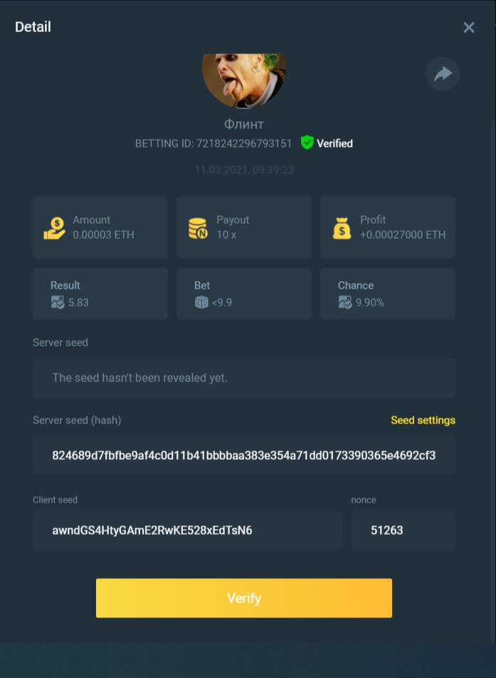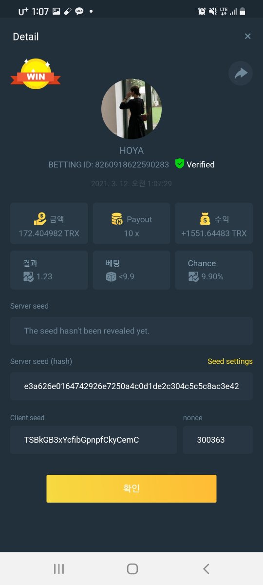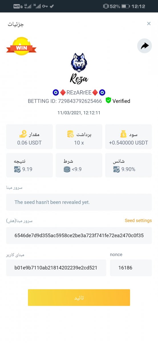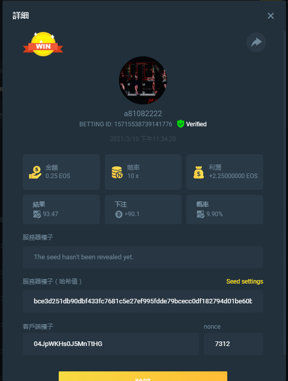 截圖中的 nonce 必需是連續的,截圖中需包含 betting id 以利驗證。