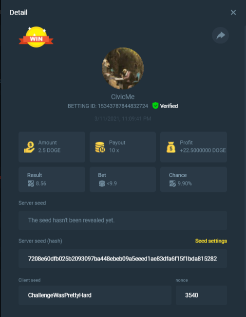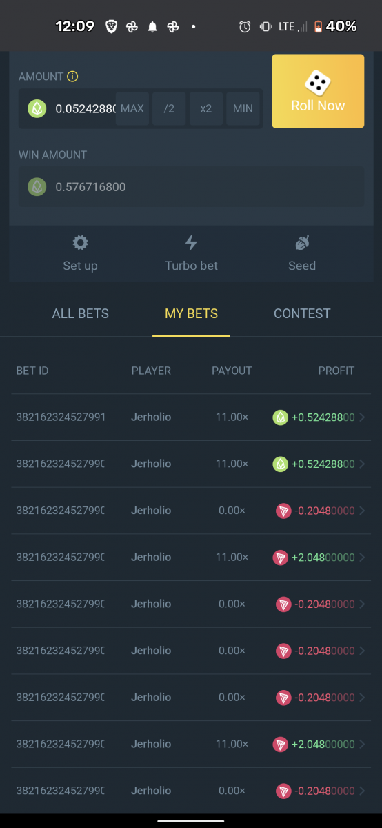 bet on Classic Dice using any coin worth 0.05 USD and hit 10x at least two times in a row