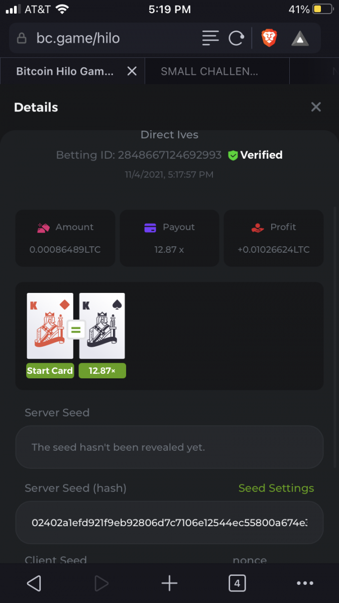 Betting ID: 34846336687801314